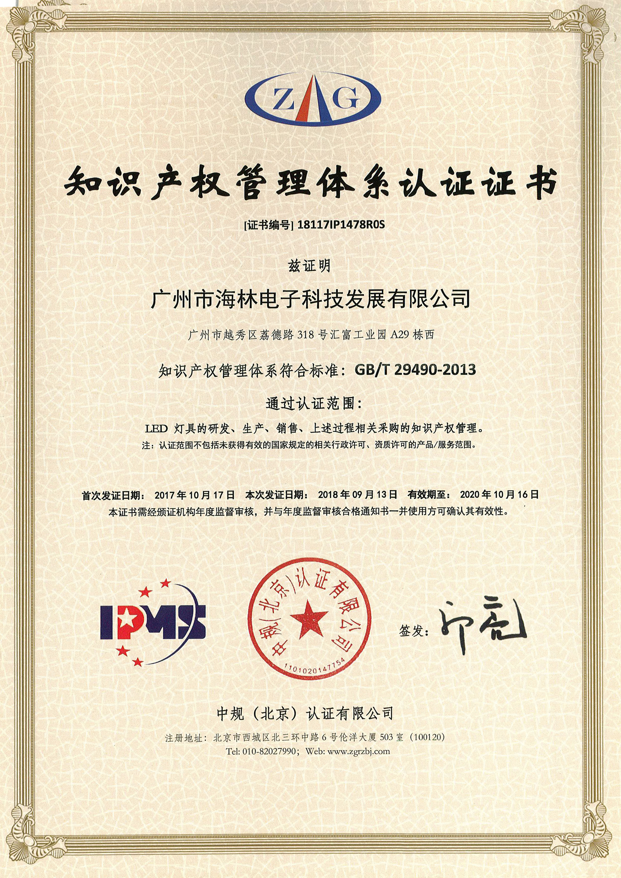 知識(shí)產(chǎn)權(quán)管理體系認(rèn)證證書(shū)