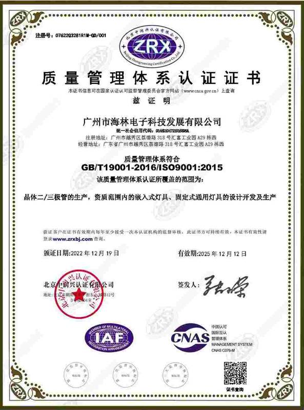 質(zhì)量管理體系證書(shū)